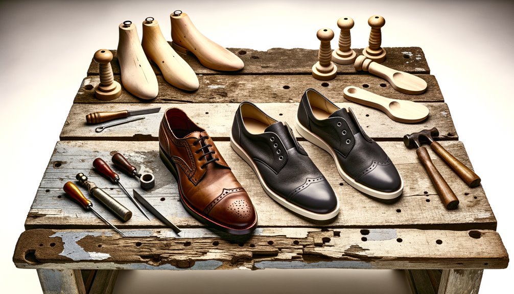 Traditional shoe construction techniques, like Goodyear and hand-welted methods, emphasize durability and repairability, providing longer-lasting footwear. These methods allow for multiple resoles, thereby promoting sustainability. In contrast, modern constructions, particularly cemented shoes, prioritize cost efficiency and rapid assembly but often lack longevity and resolability, leading to a disposable culture. Understanding these differences is essential for choosing shoes that meet your requirements. Explore further to discover the implications for your specific lifestyle and preferences.